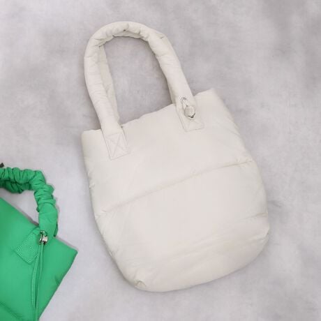 パディングされたフワフワの手触りのトートバッグ。