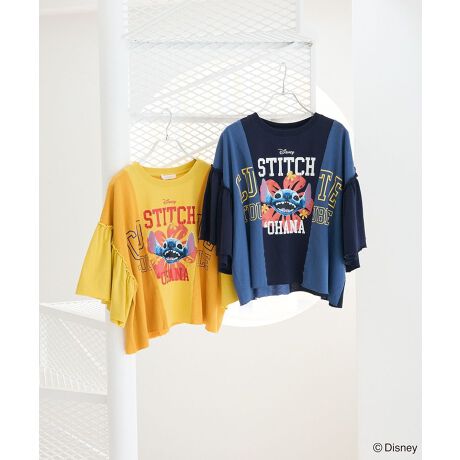 フロントにある「スティッチ」のプリントがキュートなTシャツ。リメイク風のドッキングデザインが洒落感溢れるポイントです。肩に施したフリルが女性らしい雰囲気を演出。やや短めの丈感で旬のワイドボトムとも好相性。シンプルなボトムにさらっと合わせるだけでこなれたスタイリングが完成するおすすめのアイテムです。透け感[なし]