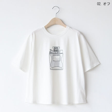 ラインストーンコラージュTシャツ(香水)[30151125]