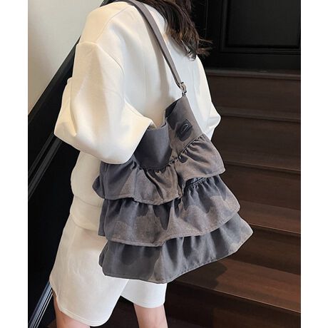 多層のフリルデザインがフェミニンな印象のショルダーバッグ。