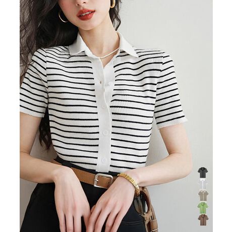 ハイウエストスカートやデニムに合わせて、洗練された大人カジュアルな着こなしが完成。