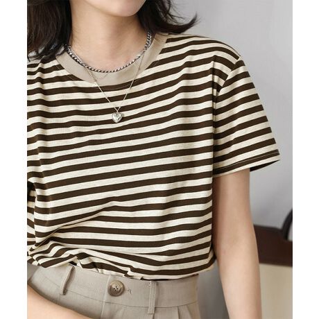 爽やかなボーダー柄が目を引く半袖Tシャツ。