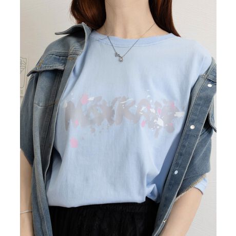 大胆なアート感のあるロゴプリントが目を引く半袖Tシャツ。