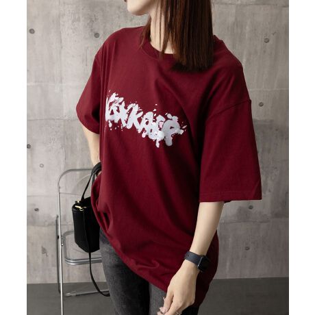 大胆なアート感のあるロゴプリントが目を引く半袖Tシャツ。