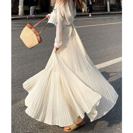 軽やかな揺れ感が魅力のシフォンプリーツロングスカート。