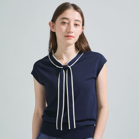 配色ボウタイリボンデザインのサマーニットプルオーバーです。
