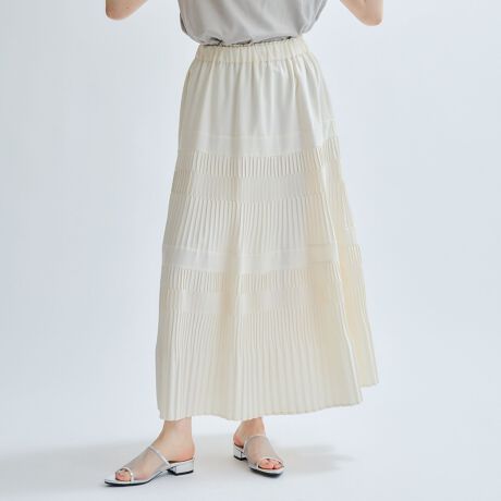 ピアノの鍵盤のような2種類プリーツで構成されるランダムプリーツスカートです。