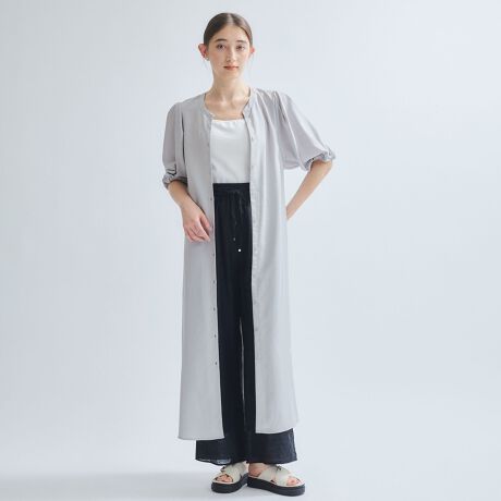 袖口にタックギャザーを寄せたランタンスリーブで優しい印象に、またキーネックデザインで首元を涼やかさと抜け感を与えます。