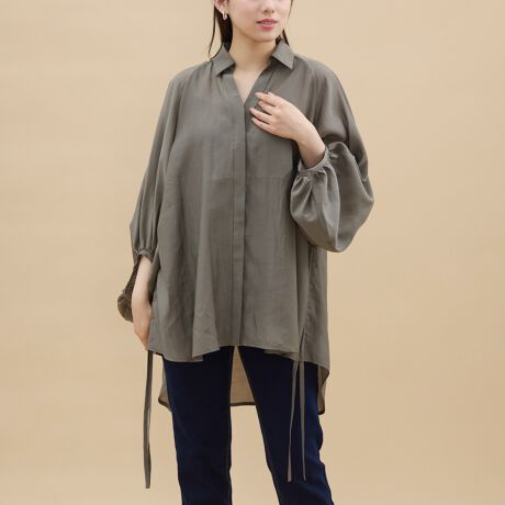 ゆったりとしたシルエットが魅力のパフスリーブブラウス。袖口に施されたギャザーが、エレガントな雰囲気を演出します。そして、ヒヨクあきで着脱がしやすいデザイン。さらに、脇のドローストリングでギャザーを寄せてアレンジすることで、異なるスタイルを楽しむことができます。