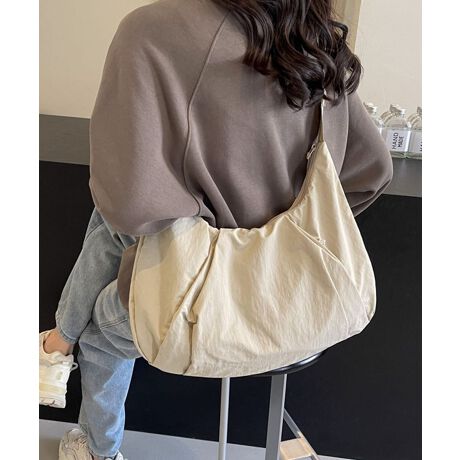 まるみを帯びたクレセントムーン型シルエットが印象的な、大容量のショルダーバッグ。日常使いしやすいデザインで、毎日のコーデに取り入れやすいアイテムです。