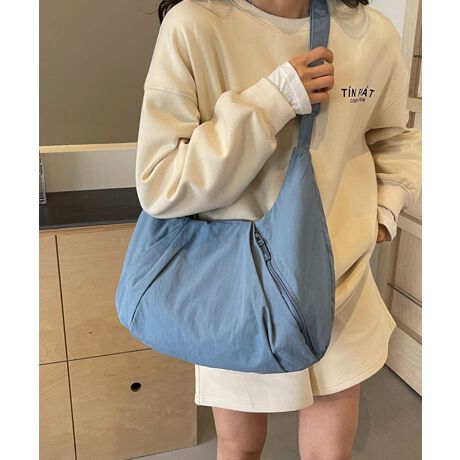 幅広のストラップは肩掛けでも手持ちでも使え、包み込むようなフォルムが身体にフィット。ファスナー開閉で荷物の出し入れもスムーズに行えます。くたっとした形はこなれ感があり、シンプルなデザインだからこそどんなスタイルにも馴染みやすいのが魅力。