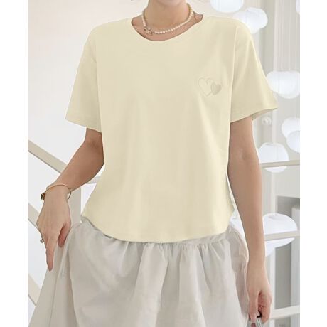 胸元のハート刺繍が印象的な、デイリーユースにぴったりのTシャツ。爽やかで軽やかな着心地が魅力の一枚です。