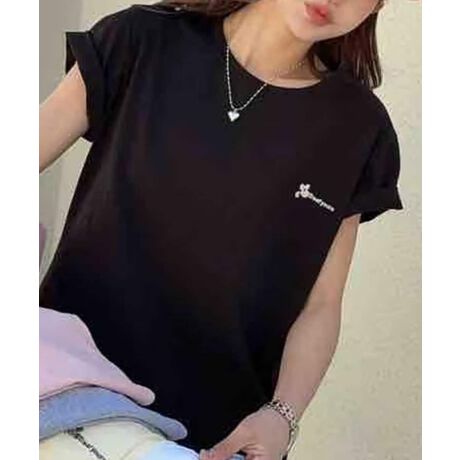 ロールスリーブ刺繍Tシャツ