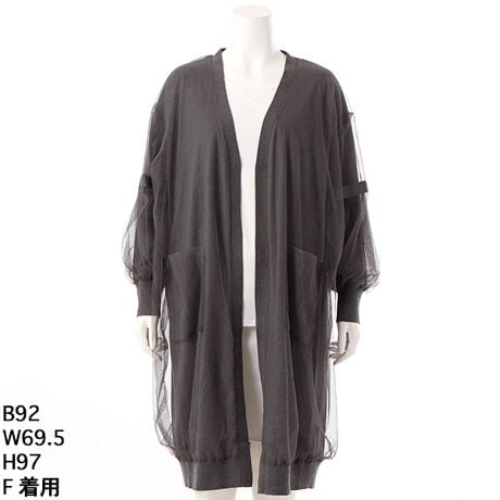 チュール重ね 着流しニットロングカーディガン