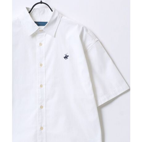 BEVERLY HILLS POLO CLUB/ビバリーヒルズポロクラブ オーバーサイズ コットン 無地 ストライプ ロゴ ワンポイント刺繍 レギュラーカラー 半袖シャツ/レディース メンズ/2025SS 春夏