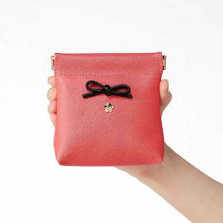 角シボ合皮にスムース革のリボンを組み合わせたシリーズ。◆シリーズ共通ポイント・リボンの下にさり気なくデイジー金具をON・牛革のリボン◆アイテム紹介(バネクチポーチ)・ワンタッチで簡単に開閉可能・リップなど小物を入れるのに便利なサイズ感※ポケット無し[型番:225-862727]