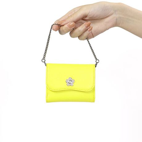 ネオンカラーが目を引く、チェーン付きのミニウォレット。