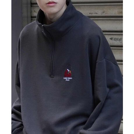 ILL'S ワンポイント刺繍 裏起毛ハーフジッププルオーバースウェットユニセックス