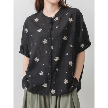 繊細な植物モチーフの刺しゅうでナチュラルな可愛らしさを演出するブラウス。