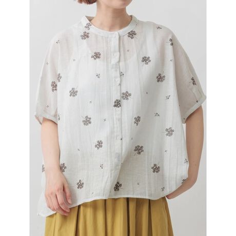 綿麻ボイルボタニカル刺しゅうブラウス
