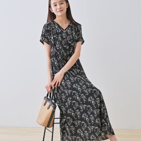 モノトーンの小花柄プリントが着やすくも映えてくれるワンピースです。
