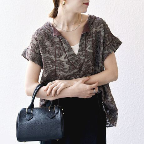 リネン素材のワイドパンツやリラックス感のあるロングスカートと合わせて、夏らしいリゾートムードに。