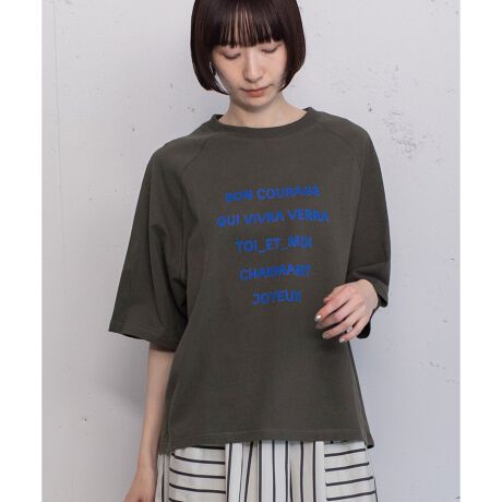 ゆるっとラフに着られるラグランTシャツ。程よくハリがあり、ドライなタッチが魅力の空紡糸天竺を使用。フランス語のポジティブで可愛らしい言葉をプリントしました。