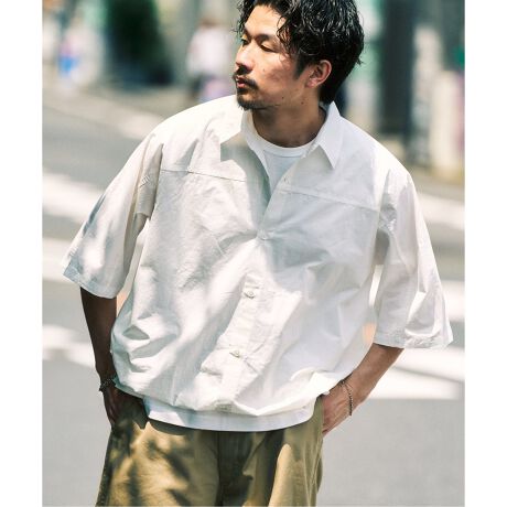 クリーンな表情とリラックス感を兼ね備えたシャツ。肩のラインをなぞる切り替えデザインと、たっぷりとした身幅+裾のゴムで生まれる“3Dシルエット”が、シンプルながらもひとクセある存在感を演出。羽織るだけでサマになる一枚です。裾のゴムによる全体に丸みのあるシルエット。空気感のある立体感のある仕上がりにしています。