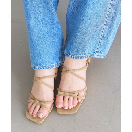 ストラップは華奢線ながらクロスすることでホールド感があり、甲に施した細リボンモチーフも程よい女性らしさを演出してくれます。