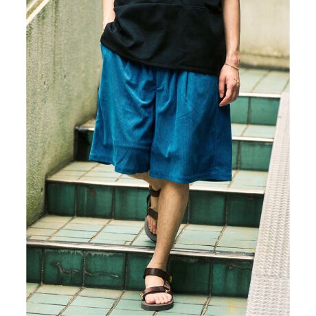 たっぷりとしたワイドシルエットに、膝が隠れる絶妙な丈感。ラフになりがちなショーツスタイルに、どこか品のある“抜け”を加えてくれる1本です。サンダルから革靴まで、足元次第で印象を変えられる汎用性の高さも魅力。