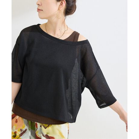 ほどよいシアー感が抜け感を演出し、クロップ丈×ワイドシルエットが清涼感もあり夏のスタイリングにピッタリなトップスです。無地とボーダーの2タイプ展開で、セットのタンクトップは単体でも使えるアイテムとなっています。