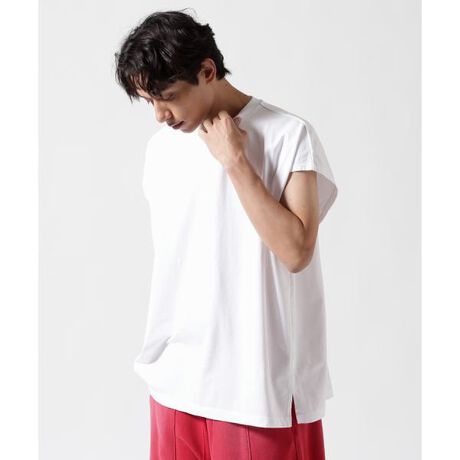 ハイゲージの天竺を使用したビックシルエットノースリーブTシャツ。