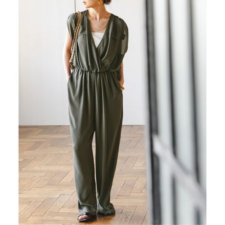 とろみのある女性らしい素材をフロントポケットなどミリタリー調のデザインに落とし込んだことで、甘すぎず辛すぎないバランスの取れた1着に。