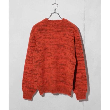 ネオンカラーの英国羊毛とカシミヤを編み、さらに起毛加工を施したシャギードックセーター。 英国羊毛特有のボリューム感と質感は残しつつ、ふんわりとカシミヤの柔らかさを感じる独特の風合いの一枚。2つの素材によるメランジカラーが目を惹くから、シックになりがちな秋冬スタイルのアクセントになってくれるアイテムです。