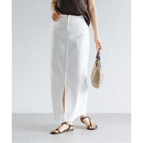 フロントジップのデザインがアクセントになったタイトロングスカート。