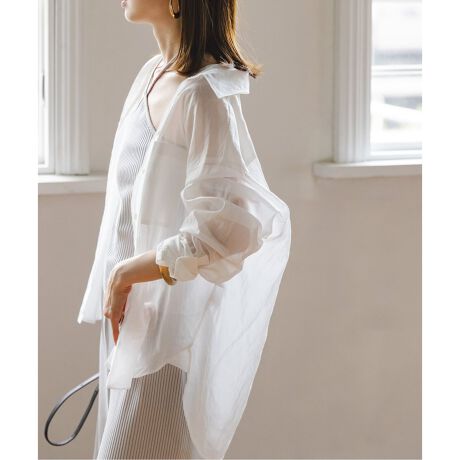 オーバーなサイジングで仕立てたことで素材の透け感を際立たせ、軽やかで春夏らしい1着に。