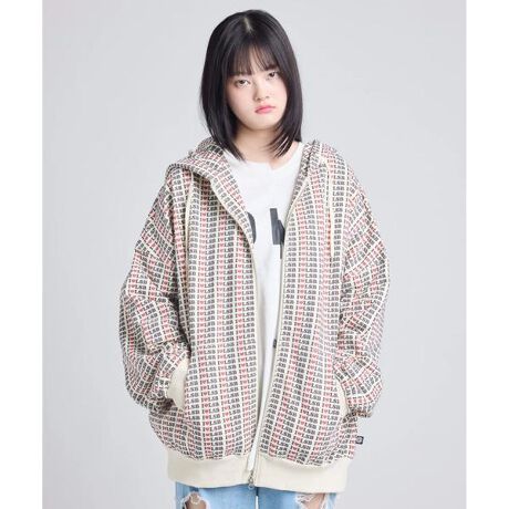 I□LSBのリバイバル柄が360度どこから見ても可愛いオリジナルグラフィックのジップアップフーディは、little sunny biteが得意なヴィンテージ加工感を施していて、ジェンダーレスで着用できます。