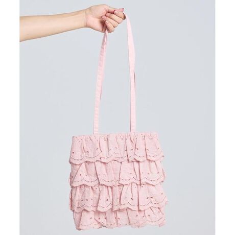 長めのショルダー部分が肩掛けしやすいレースバッグ。