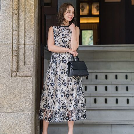 繊細なフラワー刺繍の上品なワンピース。