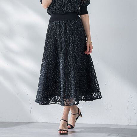 可憐なミニフラワーの刺繍が印象的なフレアースカート。