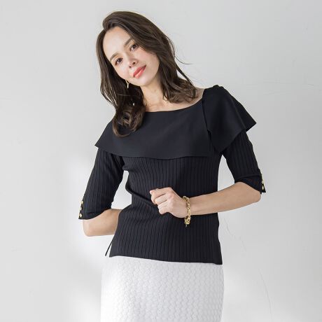 華やかな印象へ導くケープカラーニット。