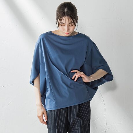 やや艶のある素材感と、着た時の袖のドレープがキレイ見えする一枚着カットソー。