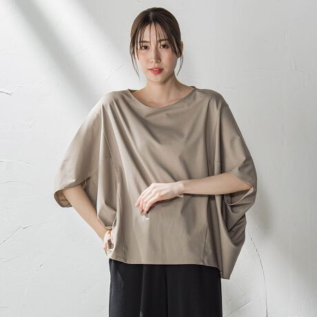 やや艶のある素材感と、着た時の袖のドレープがキレイ見えする一枚着カットソー。