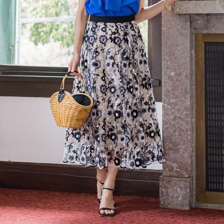 細やかなナイロンチュールに2種類の糸を使用した華やかな刺繍を施しました。