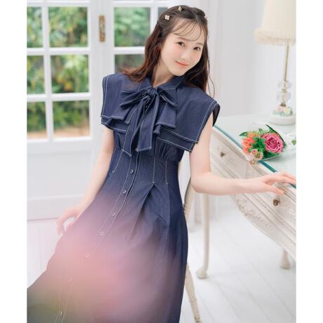 WILLSELECTIONで人気の定番アイテム、ラッフルフリルリボンタイワンピースに新作が登場♪【Design】・セーラーカラー風のスクエアラッフルがアクセントとなり、華奢見えを叶えるデザイン♪・スッキリとしたノースリーブ仕様で、夏場も快適に着られるシャツワンピース。・リボンタイは取り外し可能で、その日の気分やコーデに合わせてアレンジ自在◎・ウエストにはタックを施し、バックのレースアップを絞ることで美しいシルエットに。・裾に向かって広がるフレアラインが、フェミニンで優雅な印象をプラスします。・フロントはボタン仕様で、着脱もスムーズかつクラシカルな雰囲気♪・デニムライクな風合いながらも、柔らかくしなやかな素材感で着心地抜群です。【Fabric】・しなやかさのある生地を使用。・程よいハリのある裏地付き。・ホワイト、サックス、ネイビーの3色展開となります。【Care】ドライクリーニング