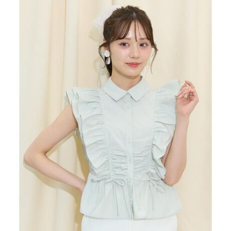 ボリューム感を演出するフリル×ギャザーが大人可愛い、最旬フェミニントップス【Design】・華やかさと今っぽさを両立したギャザーリボンフリルスリーブブラウス。・トレンド感たっぷりのペプラムシルエットで、ウエストまわりを自然にカバーしつつスタイルアップを演出♪・フェミニンな印象を引き立てるノースリーブデザインで、1枚で着映えする主役級トップスに。・フロントボタン仕様なので、きちんと感もありオフィスカジュアルにも◎【Fabic】・軽くて薄いさらりした生地を使用。・ホワイト、ミント、ギンガムの3色展開となります。・ご自宅でお手入れが出来るのも嬉しいポイント♪【Care】洗濯機洗い可能