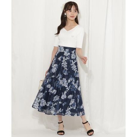 ニュアンスフラワーレースプリントフレアスカート