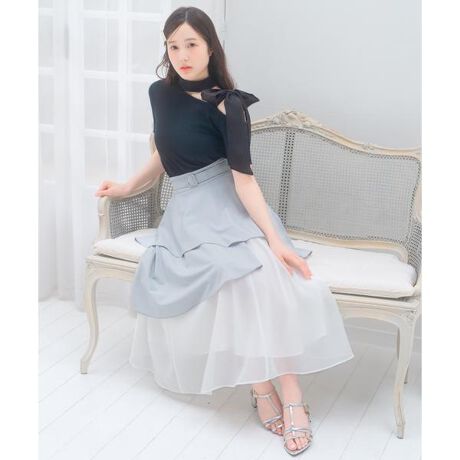 質感の異なる生地を重ねた、表情豊かなベルト付きアシメレイヤードスカート【Design】・アシンメトリーな切り替えデザインが、動くたびに美しい立体感を演出します♪・裾にはシアー感のある素材を使用し、軽やかで透明感のある印象に。・たっぷりとしたフレアが女性らしいドレープを描き、コーデに華やかさをプラス。・ウエスト部分には取り外し可能なベルトが付属し、スタイルアップ効果も◎。・ベルトは5段階調整可能で、ウエストバックはゴム仕様なので快適なフィット感を実現!・シンプルなトップスを合わせるだけでコーデが決まる、主役級の一枚です♪・左ファスナー付き。【Fabric】・フレアシルエットが美しく表現できるしなやかな生地を使用。・ハリのある裏地付き。・ホワイト、サックス、ブルーの3色展開となります。【Care】ドライクリーニング