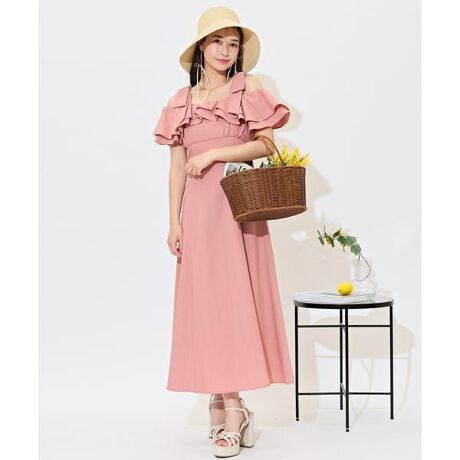 1枚で着映え、だけどラク。甘さと大人っぽさのちょうどいいバランスのロングワンピース♪【Design】・胸元のラッフルフリルが華やかさを引き立てる、オフショル風デザインのワンピース。・ノースリーブのワンピースに、オフショルフリルをプラスしたデザイン。・太めのショルダーリボンが甘すぎず、ほどよいフェミニンさを演出します♪・ウエスト高めの切り替えがスタイルアップを叶え、脚長効果も◎・ショルダーリボンは飾り仕様なので、ほどける心配がなく安心して着用できます。・背中はファスナー&ウエストバックにゴム入りで、着脱しやすく快適なフィット感を叶えます!・さらに、レースアップでウエストを絞ればメリハリのあるシルエットに。・裾に向かって広がるフレアラインとフリルが、ドレッシーで女性らしい印象をプラス♪【Fabric】・表地は軽くしなやかな生地を使用。・さらりとした、程よいハリ感のある裏地付き。・レッド、サックス、ネイビーの3色展開となります。【Care】ドライクリーニング