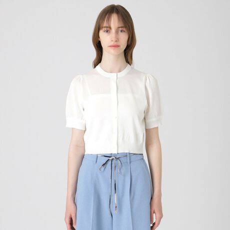 短めな着丈で、すっきりとスタイルアップして見えるカーディガンです。